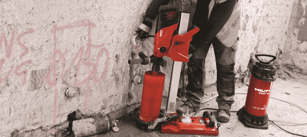 Deze diamantkernboormachine is bestemd voor het handgeleid en met behulp van een kolom nat en droog boren van gaten in of door (gewapende) minerale ondergronden.