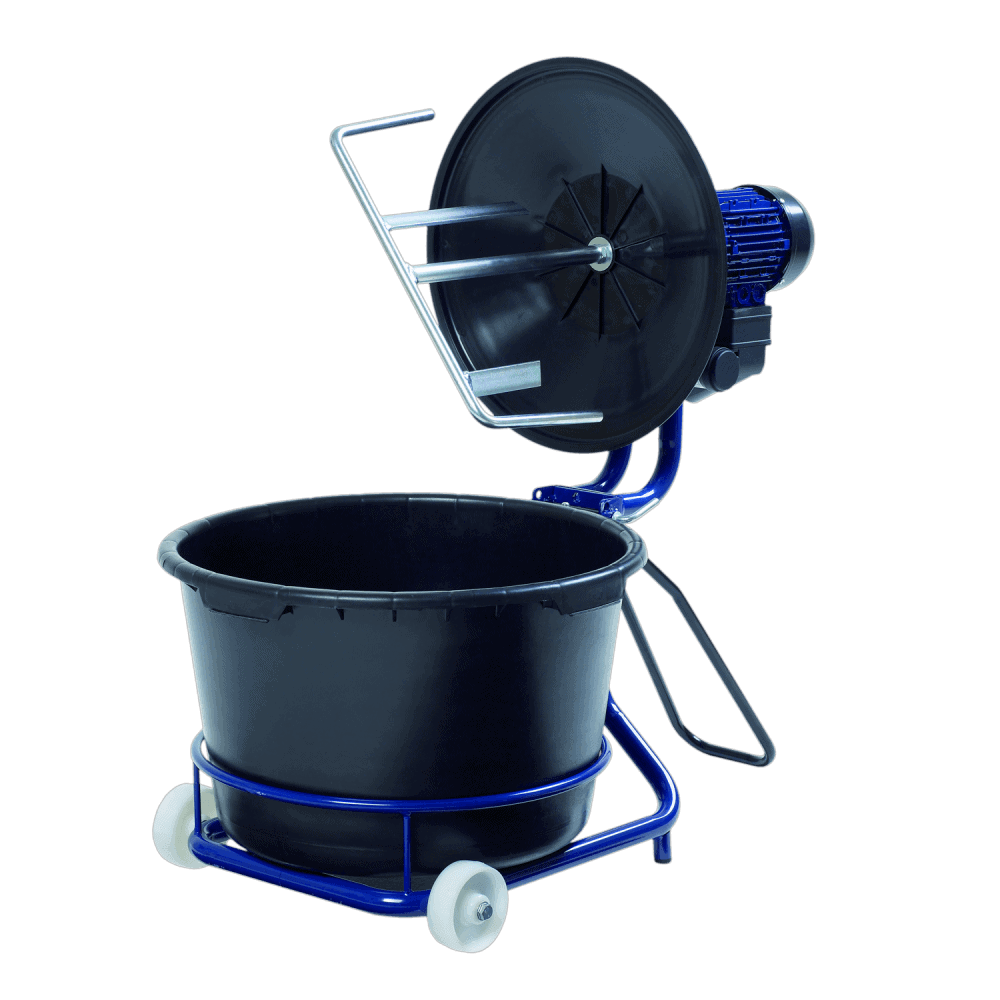 Met deze dwangmenger is het mogelijk om verschillende vloeistoffen perfect en homogeen te mengen. Denk hierbij aan cement, voegspecie, tegellijm, vernis, epoxyhars en grindvloeren. Gemakkelijk te transporteren door middel van de wieltjes.
