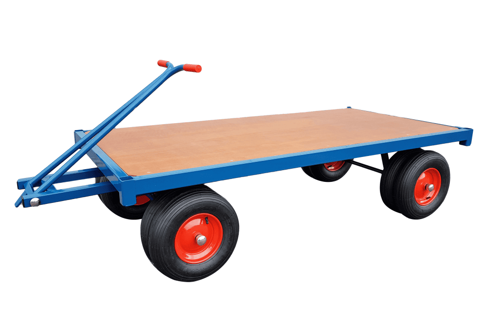 Zware materialen vervoeren over een korte afstand? Dan is de handtrekwagen een goede optie. Deze wagen is wendbaar door de schamelbesturing. Zeer handig voor gebruik in magazijnen of bij de op- en afbouw van evenementen.