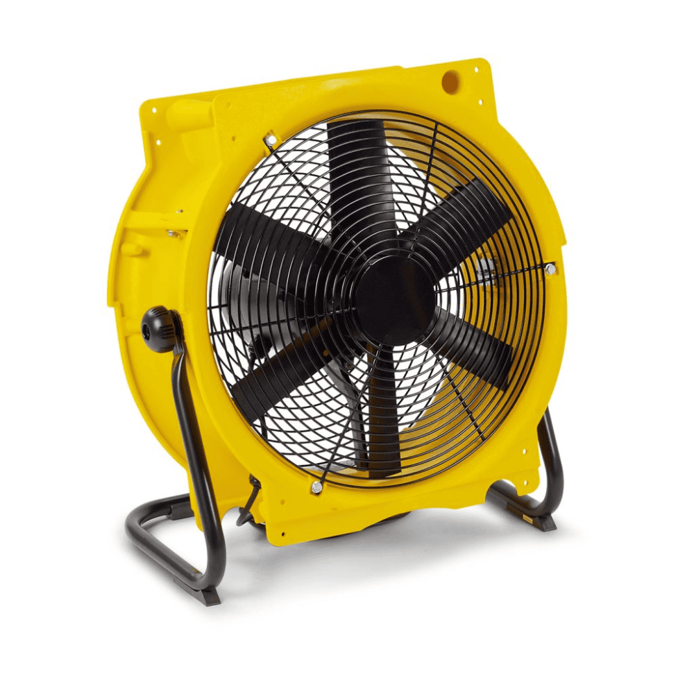 Multifunctionele axiaal ventilator welke inzetbaar is ter ondersteuning bij bouwdroging, stofafzuiging, koeling en verwarming.