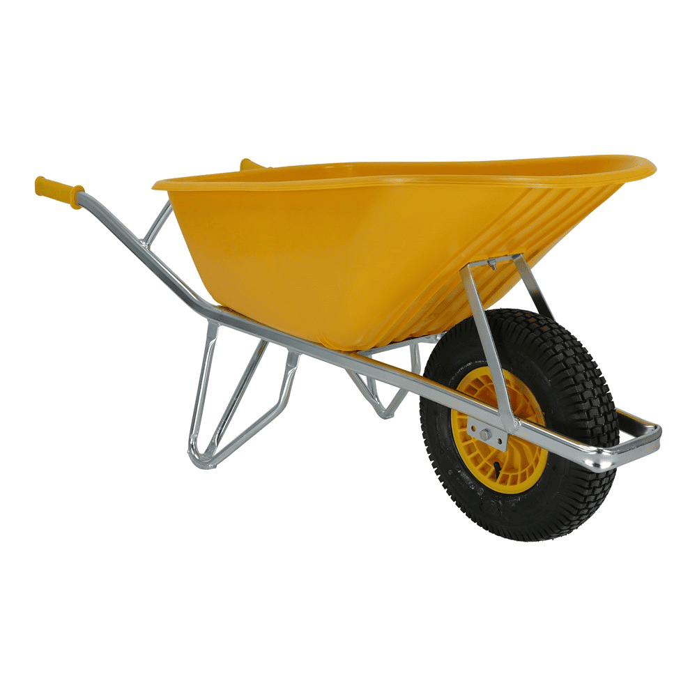 Voor het eenvoudig verplaatsen van zand, grond, grind e.d. Voorzien van stevige, onverwoestbare kunststof bak.