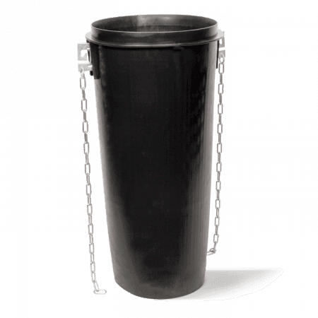 Door de grote vulbreedte van de vultrechter kan een kruiwagen gemakkelijk in z’n geheel worden leeggekiept.