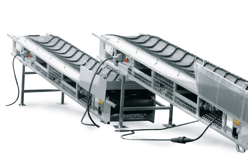 De transportbanden zijn zeer robuust uitgevoerd met een oerdegelijke, eindloze rubberen band