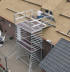 Moet u werken aan een dakkapel of een schuine gevel, maar kunt u dit niet bereiken met een normale rolsteiger? Huur dan een uitwijkconsole, zo kunt u uw werkoppervlak vergroten met 135 cm vanaf de rolsteiger.